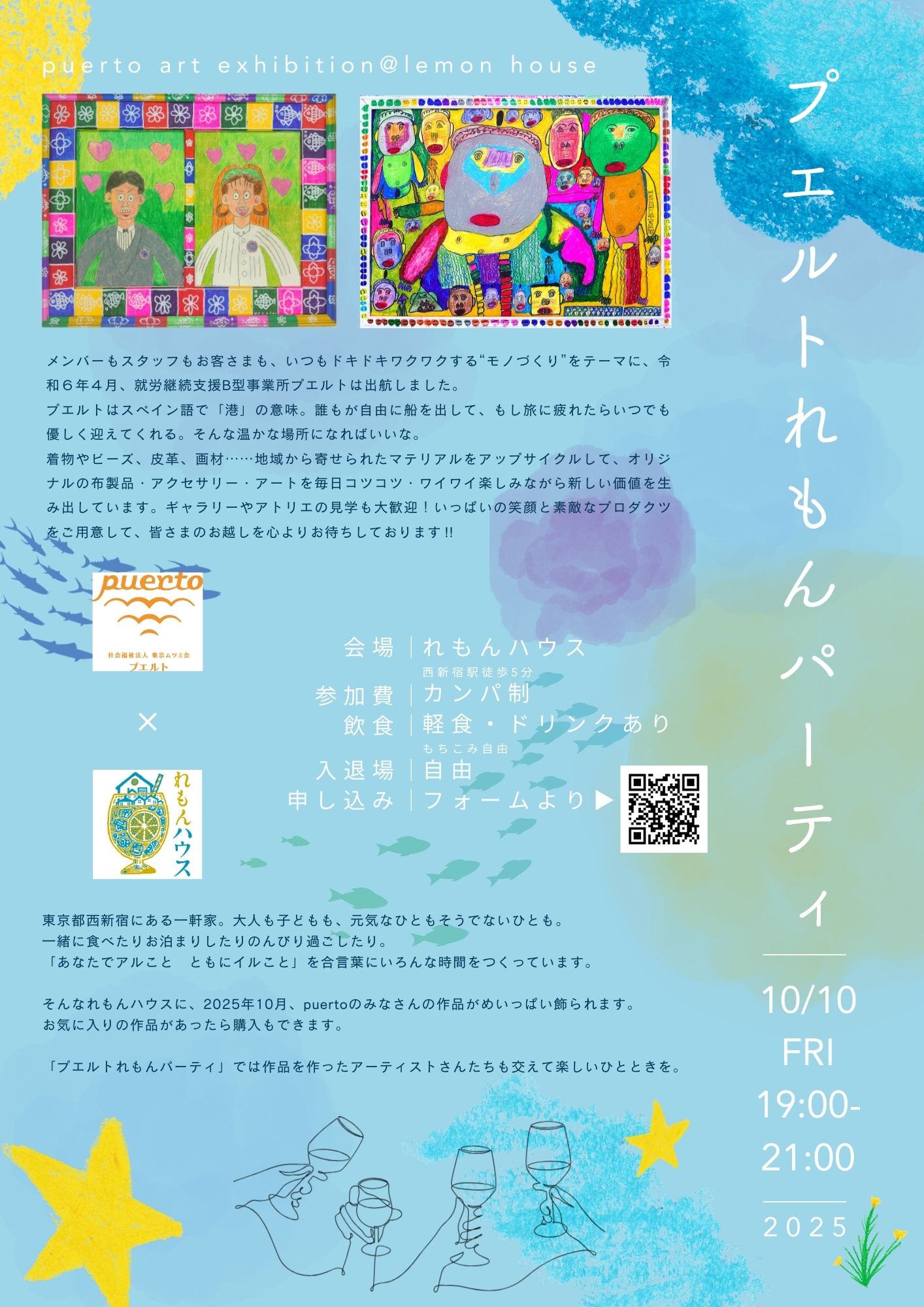 子どもも若者も大人も……どんな人も温かく迎えてくれる“れもんハウス”とプエルトとの初のコラボアートエキシビション「プエルトれもんパーティー」が決定‼プエルトの専属アーティスト達が丹精込めて描いたオリジナルアートを鑑賞しながら、深まりゆく秋のひと時を楽しみませんか?もちろん心優しいアーティスト達も多数、馳せ参じます。
