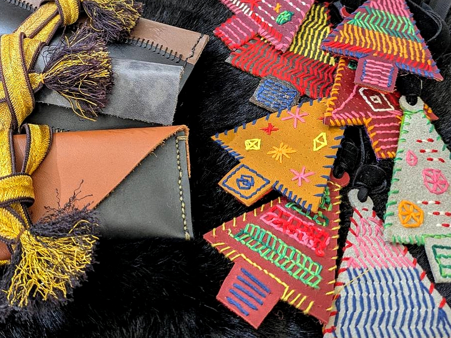 天然皮革をアップサイクルしたオリジナルアイテムの一例